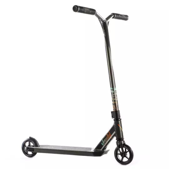 La trottinette freestyle Versatyl Cosmopolitan V2 est la nouvelle version améliorée de la trottinette Cosmopolitan première du nom. Cette nouvelle version est destinée aux débutants et intermédiaires qui sont à la recherche d'un produit qualitatif. Cette Cosmopolitan V2 est prête à faire des ravages dans le monde de la trottinette freestyle, notamment grâce à ses composants plus solides tout en garantissant toujours plus de légèreté.